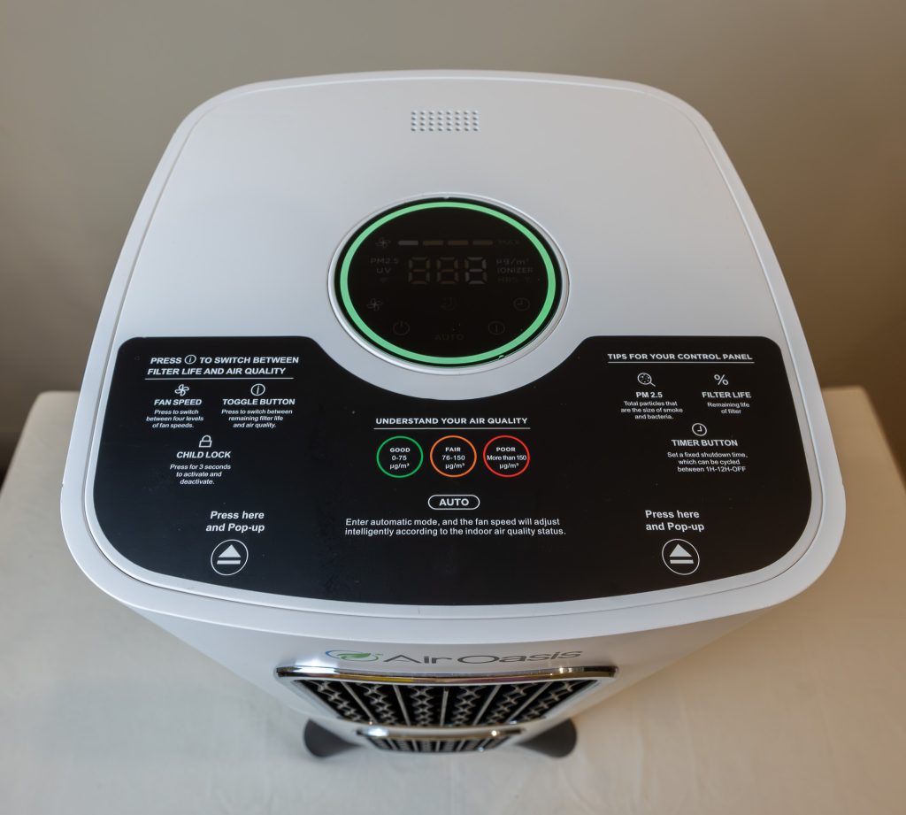 The design is minimalist but premium, with a matte black finish and intuitive digital display. It’s easy to operate, easy to love, and filters particles down to 0.003 microns. That includes smoke, bacteria, viruses, pet dander, dust, mold spores, and even VOCs from household cleaners or paint.