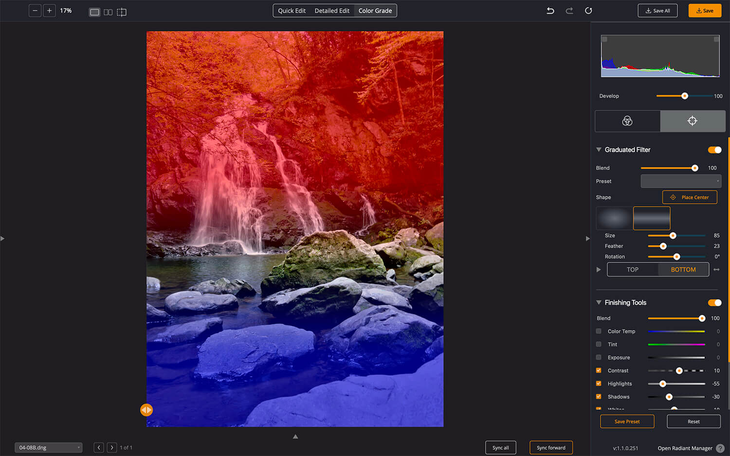 In the Finishing Tools, you’ll find a set of traditional development tools. We can use these at the end of the pipeline to refine the photo.