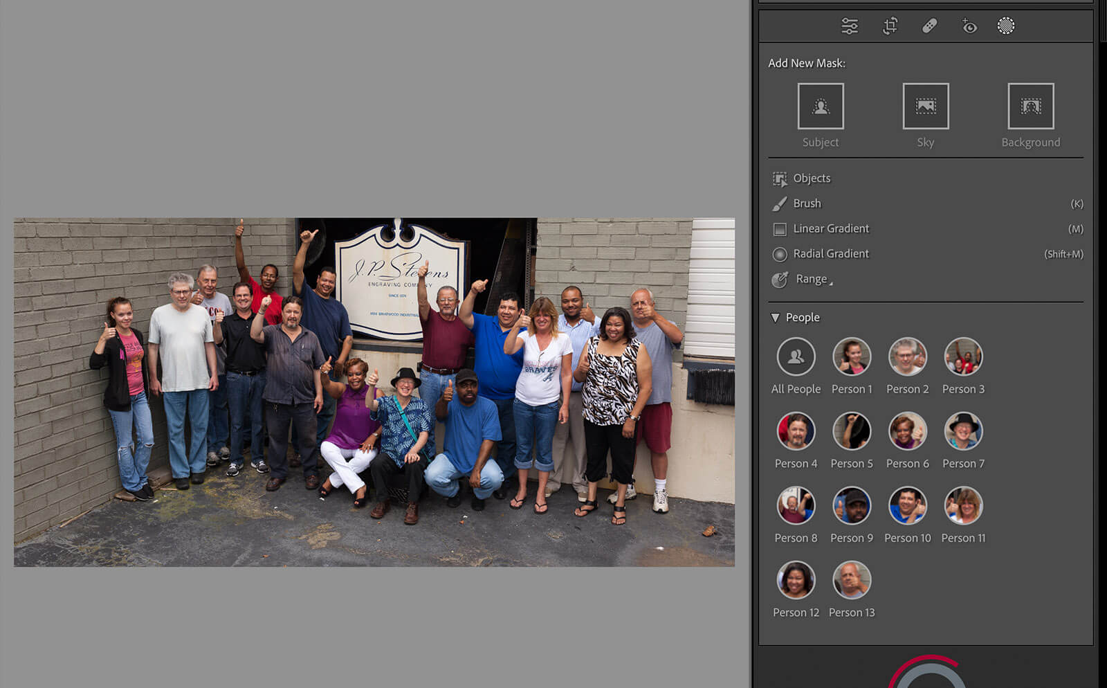 Nope. It all happens in the latest version of Lightroom Classic. First, here’s a look at how Masking finds and selects individuals in groups.