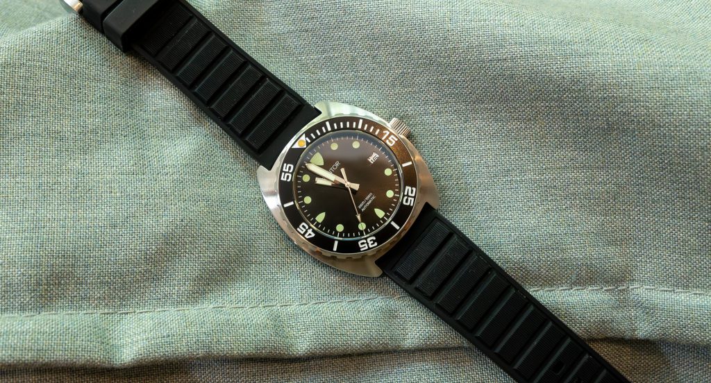 I wore it as it’s intended to be worn: on the rubber strap, through regular days, a little outdoor time, and the normal water contact that happens when you stop babying a watch. The central question at $539.99 isn’t whether it can look like a diver. It’s whether the architecture feels honest.