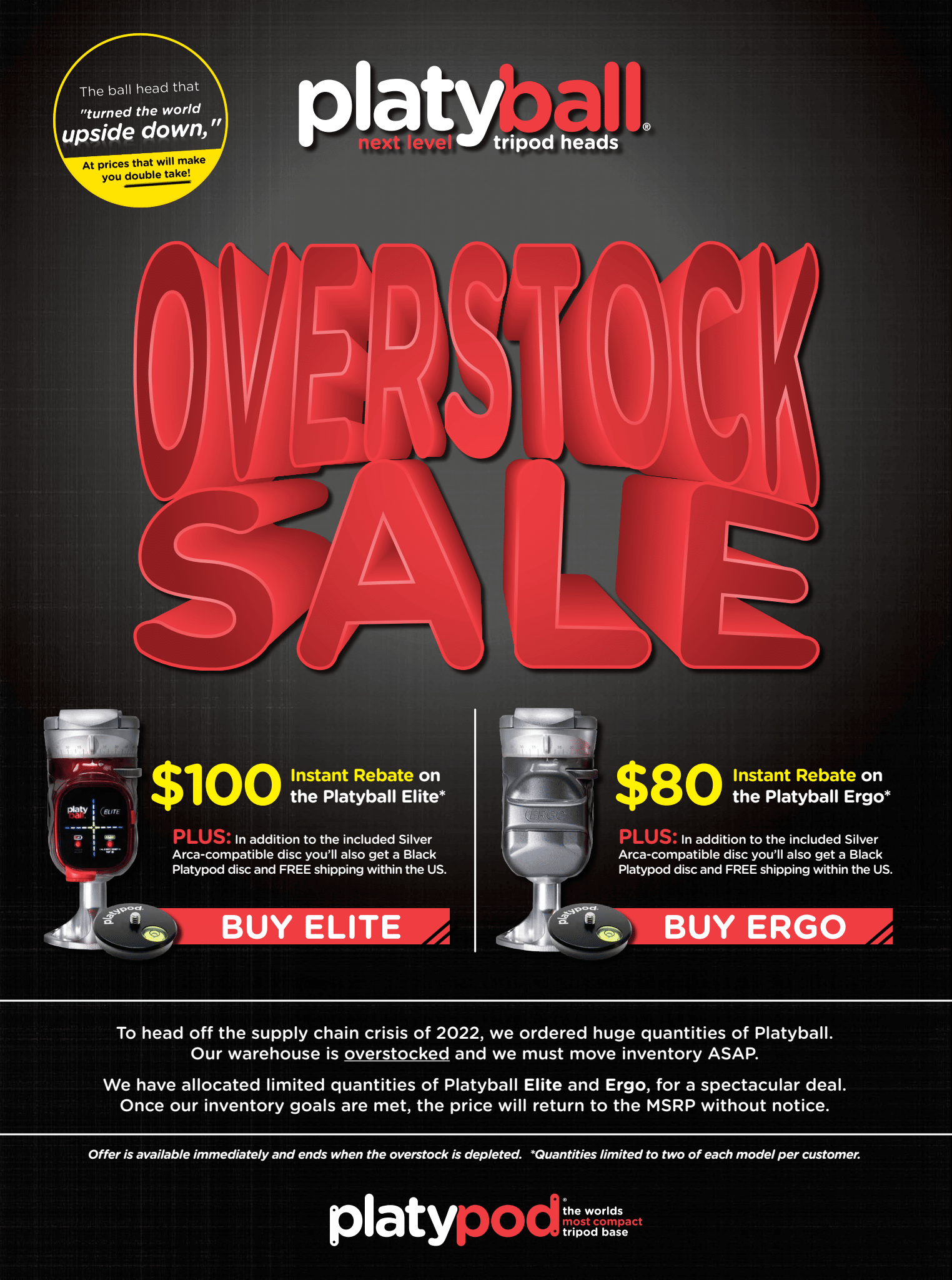 Curious about Platypod ballhead products and how they’d fit into your photography workflow? Now would be a great time to give them a try, as Platypod is currently having an Overstock Sale!