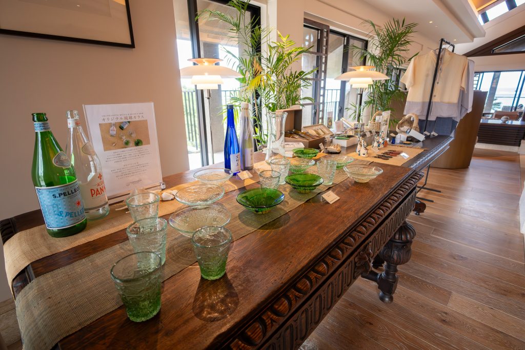 The Reception Lounge faces the water, and its terrace earns the reputation as one of the most photogenic spots because it’s uncluttered and correctly oriented. The first sensory note is olfactory: an original essential oil scent based on geraniums and other flowers grown in Ginoza Village. It’s subtle, and it matters. It makes the entry feel local without turning the whole place into a theme park of “Okinawa.”