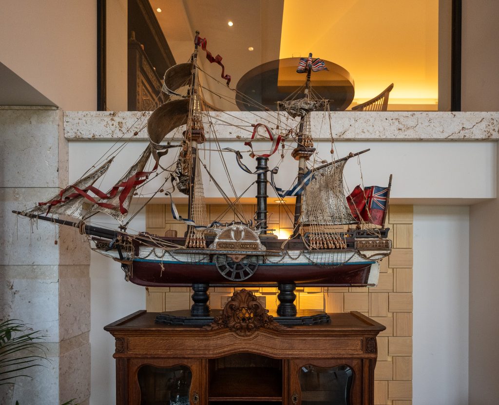 The public spaces carry a calm, refined palette: dark brown wooden floors and furniture, chic fabric combinations, and the occasional European antique and fine art piece used as punctuation rather than theme. I’m sensitive to “imported” décor in tropical settings because it can read like a costume. Here it mostly works because the architecture does the heavy lifting. Large windows and terraces keep pulling your eye back to the ocean and the vegetation, so the interior objects function as texture, not identity.