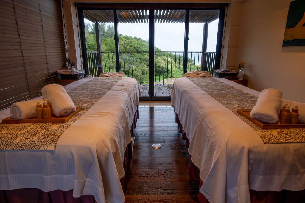 THE SPA・KUKURU is the other major pillar. It has two treatment rooms, including one that can handle two for a couples massage, and it leans into Okinawan natural themes: blue sky, cobalt sea, starry nights, and what it calls the earth’s energy. The spa uses original oils selected in line with the phases of the moon, and the programs are customized by experienced therapists. Even if you’re skeptical of spa language, the operational details matter more: it runs long hours, it’s reservation-only, and it’s quiet enough to feel like a real reset.